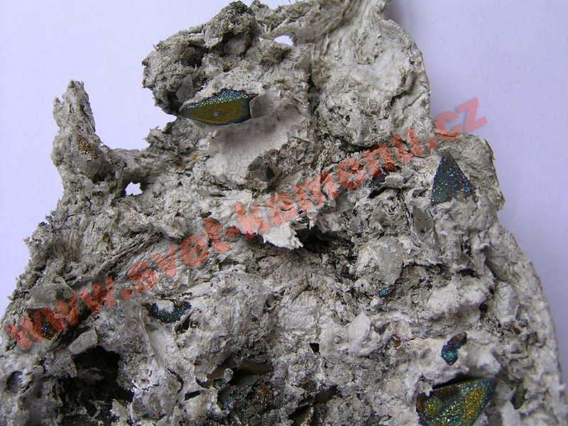 | Bornit - šachta Bukov, 12. patro, Bukov u Dolní Rožínky | | Vesuvian, diopsid - důl KHB, 20. patro, Dolní Rožínka | |