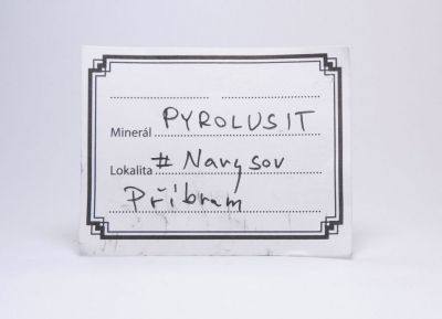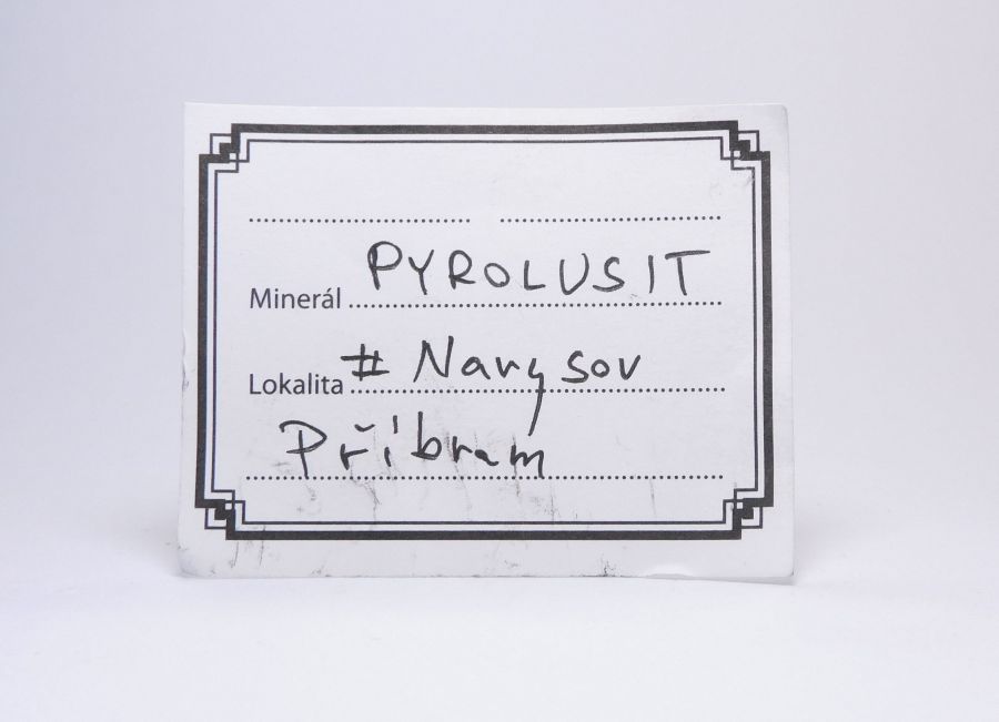 Velmi bohatá ukázka významného zástupce manganových rud - pyroluzitu s obsahem až 63% Mn, což je oxid manganičitý, dříve nazývaný jako burel. Pyroluzit vytváří paprsčité srůsty jehlicovitých xx a vláknitých agregátů kovového lesku a ocelově šedé až železně šedočerné barvy o celkové velikosti 5,7x5,1x3,8cm. Zdejší pyroluzit vznikl při větrání sideritu bohatého na mangan. Zmínky o hornické činnosti u Narysova pocházejí již z 16. století ve spojitosti s ražbou Dědičné štoly. V roce 1863 byly soukromými podnikateli prováděny průzkumné práce šachticemi k prověření Ševčínské žíly, táhnoucí se od Drkolnova. V celé sledované délce měla žíla železitou a manganovou výplň a od dalšího kutání bylo upuštěno. V roce 1892 zahájily u Narysova průzkum Státní doly na stříbro a olovo v Příbrami ražbou šachtice do hloubky 64 metrů, ale v žilné výplni nebyly nalezeny ani sledy olova, a proto byly práce v narysovském dole v roce 1895 zastaveny. Coll. R. Vodrážka, Příbram.