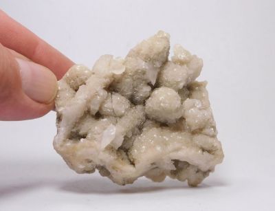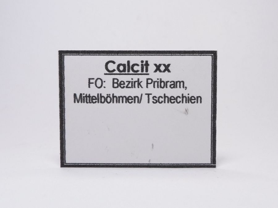 Zcela nepoškozená a oboustranně vyvinutá ukázka uhličitanových minerálů v podobě souvislých drúz drobně klencových xx dolomitu, které v podobě perimorfóz dokonale obrůstají původní xx kalcitu. Na zmíněné xx dolomitu místy narůstají čočkovité xx kalcitu. Jedná se o tzv. plavák z dutiny o velikosti 5,6x5,1x2,5cm. Ze starší německé sbírky. Vzorek se sbírkovou popiskou a krabičkou. Ex.Coll. S. Meier, Gera, Německo.