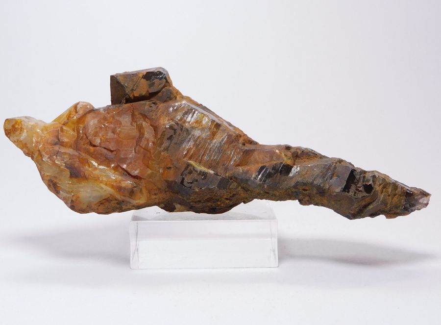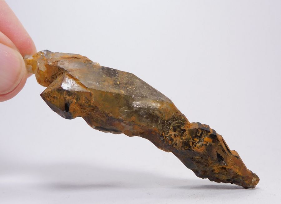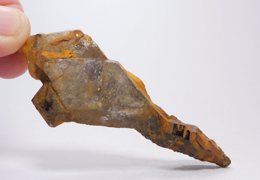 Hypoparalelně vyvinutý krystal záhnědy 8,8x3,6cm. Limonit možno odstranit mechanickou či chemickou cestou. 70
