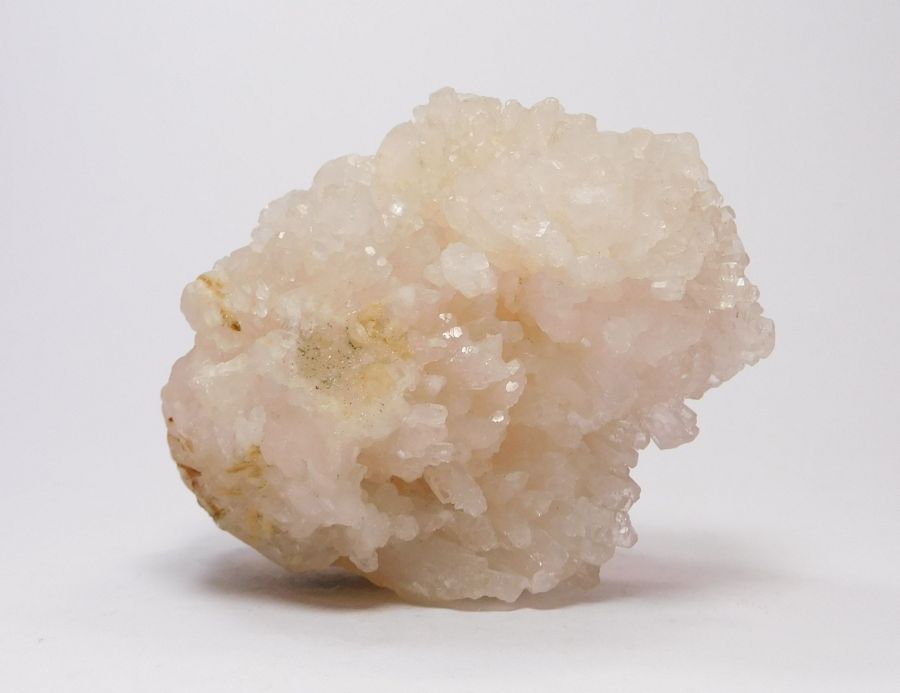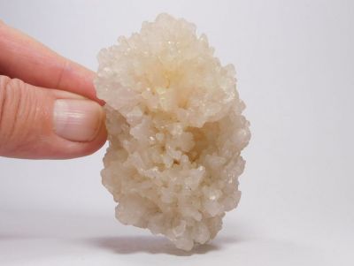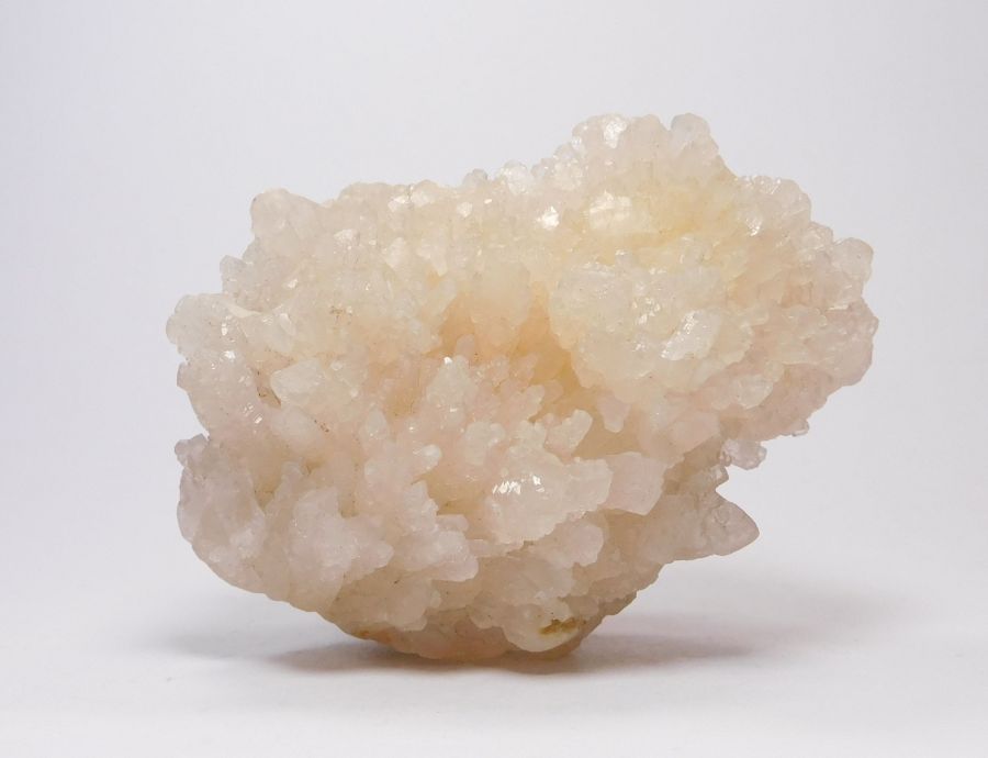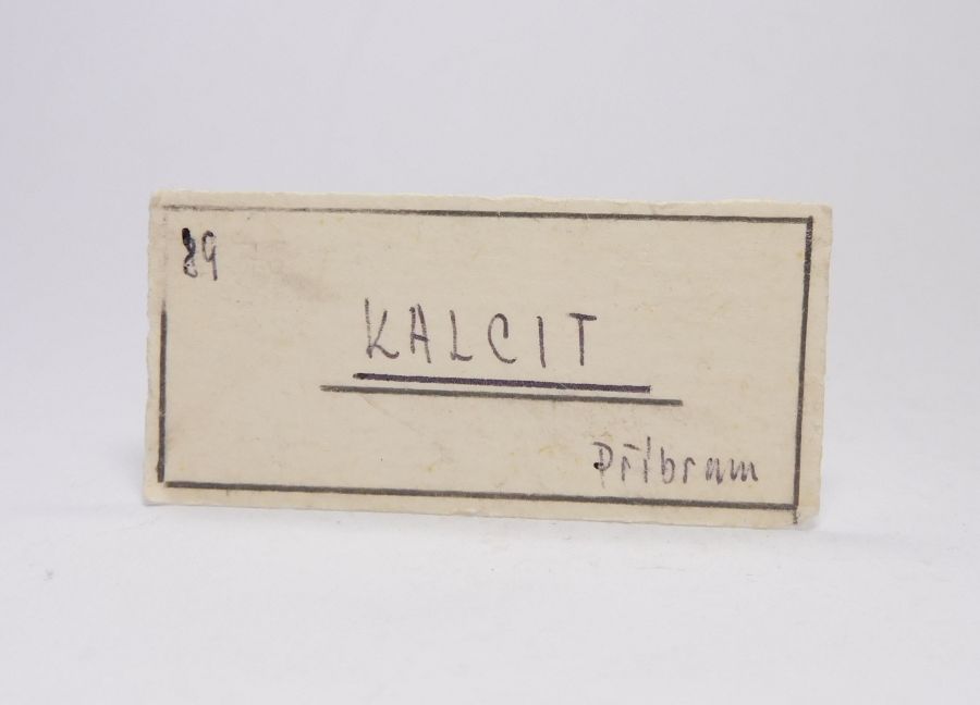Pěkná drúza uhličitanu vápenatého - kalcitu, který pochází z příbramského polymetalického revíru. Vzorek je tvořen hypoparalelními srůsty skelně lesklých, bezbarvých, průsvitných až místy průhledných krystalů tzv. dělového tvaru, tj. spojky ditrigonálního prizmatu a romboedru. Celková velikost 7,7x5,5x4,2cm. Vzorek pod UV světlem má světle oranžovou luminiscenci. Ex.Coll. Ing. M. Hrabě, Humpolec.