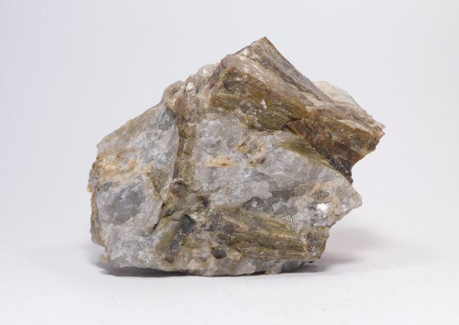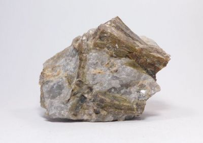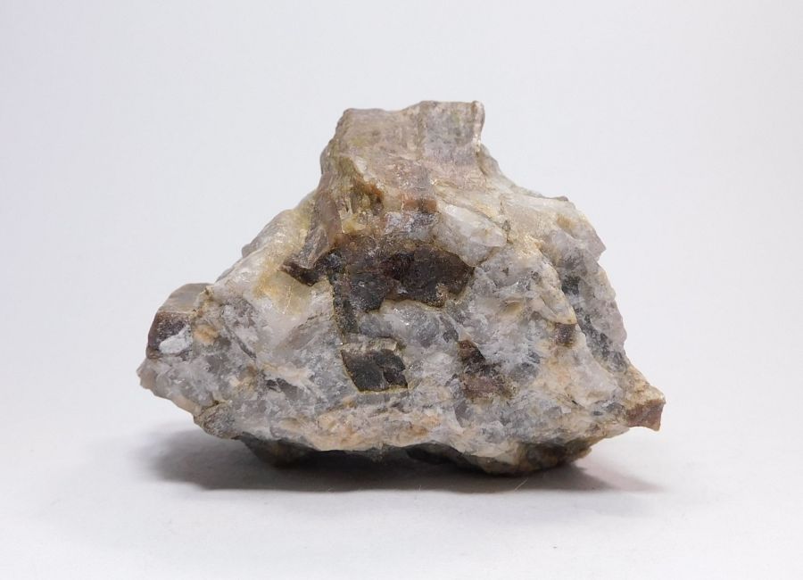 Ukázka křemičitanu hliníku - anadalusitu, pocházející z podzemního dolu na živcovou surovinu, kde první pokusy dolování jsou zaznamenány již v 80. letech 19. století. V tomto případě se jedná o vzorek křemene z pegmatitu o velikosti 7,5x7,4x5,7cm, do něhož vrůstají hranolovitě sloupcovité krystaly zmíněného křemičitanu neboli silikátu hnědofialové barvy.